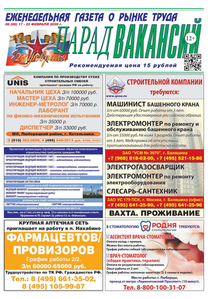 ЕЖЕНЕДЕЛЬНАЯ ГАЗЕТА О РЫНКЕ ТРУДА ПАРАД ВАКАНСИЙ