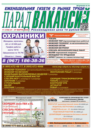 ЕЖЕНЕДЕЛЬНАЯ ГАЗЕТА О РЫНКЕ ТРУДА ПАРАД ВАКАНСИЙ