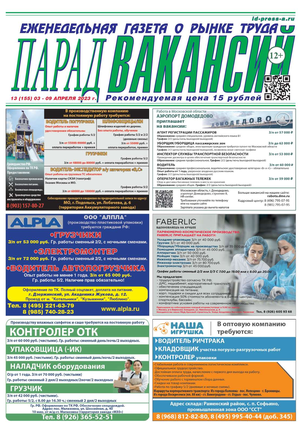 ЕЖЕНЕДЕЛЬНАЯ ГАЗЕТА О РЫНКЕ ТРУДА ПАРАД ВАКАНСИЙ