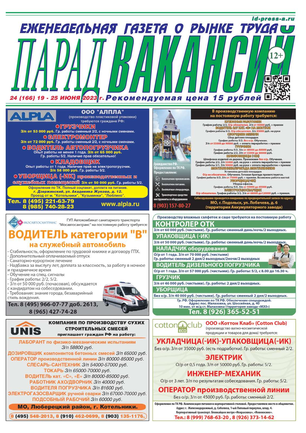 ЕЖЕНЕДЕЛЬНАЯ ГАЗЕТА О РЫНКЕ ТРУДА ПАРАД ВАКАНСИЙ